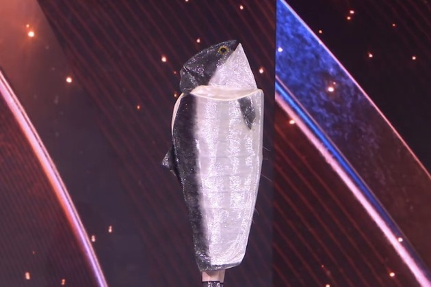 El diseño combinó tonos plateados y rosa, reprodujo escamas y presentó una cabeza de pez esculpida que envolvió a la candidata. La estructura exterior se abrió durante la pasarela y dejó al descubierto un body semitransparente pensado para imitar el interior del pescado.