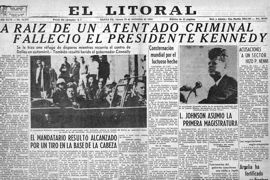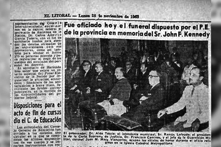 Todo este introito viene a cuento de una “bajada” local que tuvo este mundialmente conocido hecho. El lunes 25 de noviembre de 1963, El Litoral tituló: “Fue oficiado hoy el funeral dispuesto por el P.E de la provincia en memoria del Sr. John F. Kennedy”. El artículo estaba acompañado de una imagen del acto.