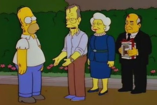 En septiembre de 1990, Barbara Bush comentó en una entrevista para la revista People que Los Simpson era la cosa más tonta que ha visto en su vida. Cinco años después, salió al aire este episodio, en el que George H. W. Bush y su esposa Barbara se mudan a Springfield y, luego de una serie de peleas entre Bush y los Simpson, deciden irse.