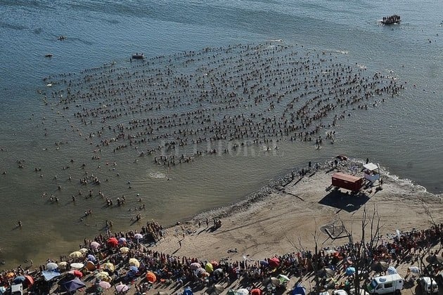 Para contar la cantidad de personas que ingresaron al agua se instalaron 2 molinetes y un dron sobrevoló la laguna el fin de verificar que la fila no se rompió durante los 30 segundos de competencia.