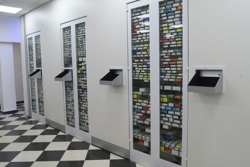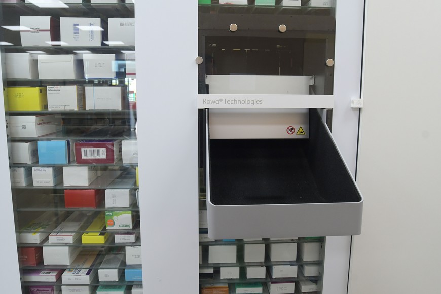 Rowa, un robot de alta tecnología, permite el almacenamiento automatizado de medicamentos, transformando las farmacias de la mutual.