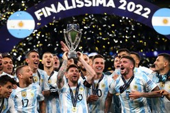 Lionel Scaloni sosteniendo el trofeo de la Copa Mundial de la FIFA, durante la develación del calendario de partidos para el mundial 2026 Xinhua/Jia Haocheng.