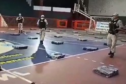 "La combi completa". Esta vez Gendarmería Nacional pudo dar con un cargamento de una tonelada de hoja de coca que era transportada en una camioneta tipo furgón. La mercancía iba en fardos envueltos en bolsa de consorcio y fue expuesta en una cancha de básquet para que las autoridades fotografiaran la magnitud del cargamento.