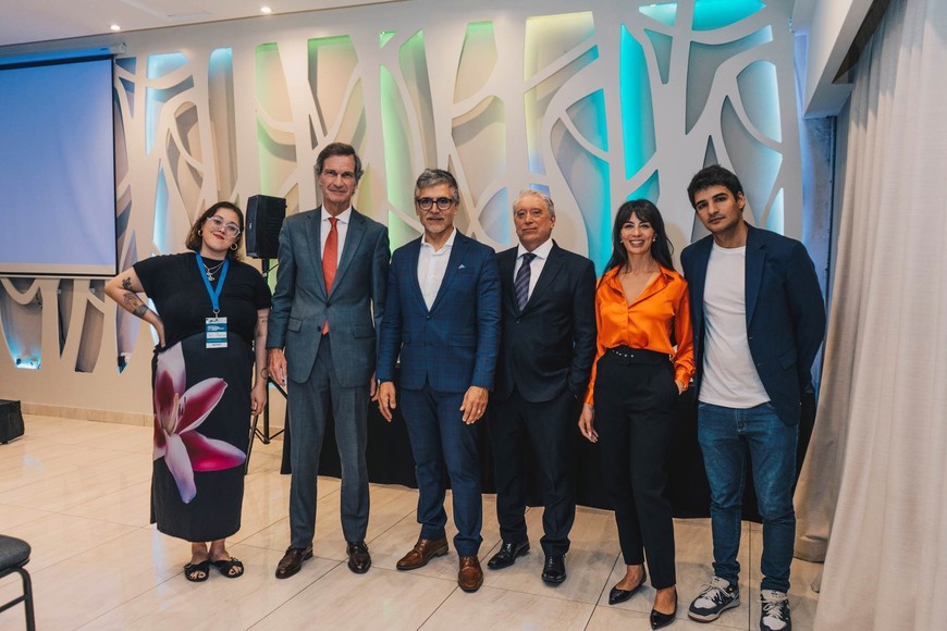 Junto al Lic. Hugo Maquiavelli, el Dr. Conrado Estol, Brandon Maquiavelli, la Lic. Constanza Mitre y Melisa Machuca, Gerenta de Prensa de OSPAT