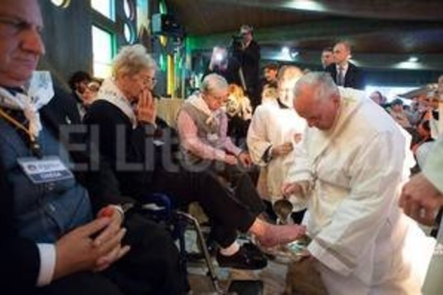 “Y realiza este gesto de lavar los pies -subrayó Francisco- que es un gesto simbólico: lo hacían los esclavos, los siervos a los comensales que iban a almorzar o cenar, porque en ese tiempo las calles eran de tierra y cuando se entraba en una casa era necesario lavarse los pies”.