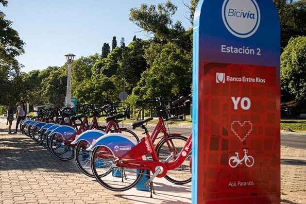 El Plan de Bicicletas Públicas, un sistema compartido entre la municipalidad de Paraná y el Banco de Entre Ríos, se implementa en la capital provincial desde febrero de este año. Se enmarca en el Plan de Movilidad Urbana municipal y contó con una inversión total de 21 millones de pesos.