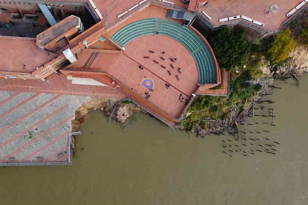 El 23 de julio del año pasado se desmoronó una importante explanada del parque España, ubicado en la costanera de Rosario. Se trata de una ruptura de 20 metros que se produjo por la sequía récord del río Paraná.