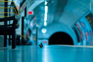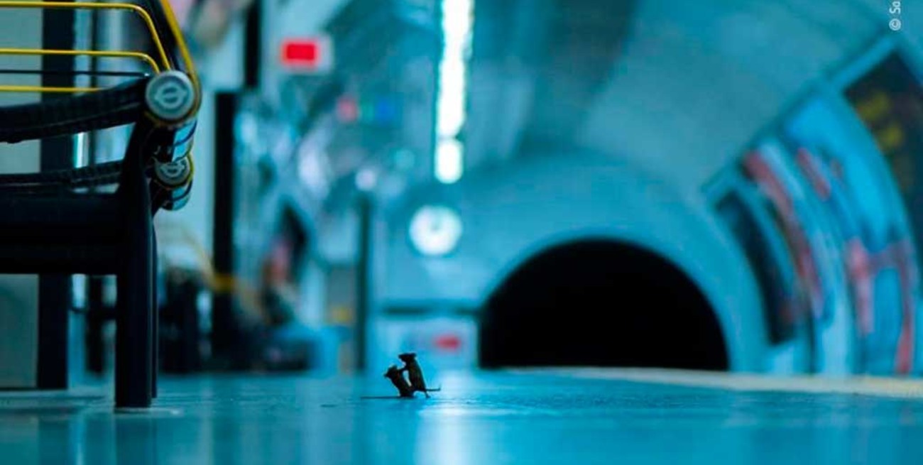 Para lograr esta imagen que parece de animación, Rowley pasó varias noches tirado boca abajo sobre los andenes de la línea central hasta que logró inmortalizar el momento en el que los pequeños roedores, habituales del subterráneo londinense, comenzaron su pelea por una miga de pan.