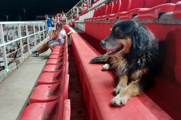 En ocasiones, también fue registrado en las tribunas del estadio 15 de Abril en pleno partido, ya sea sentado en alguna de las butacas de la platea o a los ladridos por el estruendo del público.
