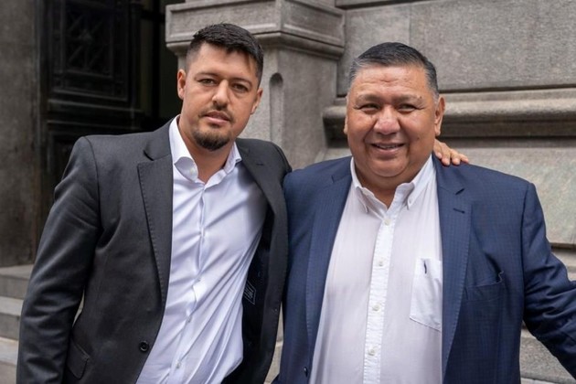 Mongilardi junto a Jorge "Loma" Ávila, referente del Sindicato de Petroleros de Chubut. Fotos: Gentileza