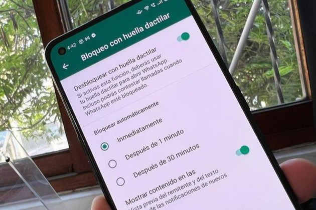 También tenés la herramienta para definir si deseás desbloquear tus conversaciones de WhatsApp con tu huella dactilar.