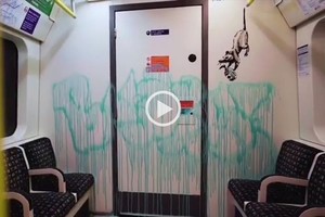 El video muestra al enigmático Banksy caminando hacia el vagón, vestido con un equipo de protección blanco, capucha, gorra, antiparras, guantes, máscara y un chaleco anaranjado, y pidiéndole distancia social a un pasajero con el que comparte el espacio.