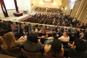 El escenario fue un colmado Paraninfo con profesionales y estudiantes de Derecho; autoridades universitarias, jueces, legisladores y dirigentes políticos que acompañaron a los expositores.
