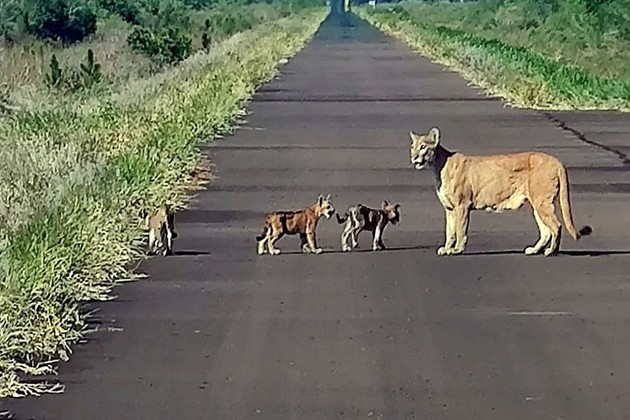 Allí fue se se registró la presencia de una hembra de puma y sus cuatro cachorros, señalaron. La imágenes, que se hicieron virales en las redes sociales, fueron tomadas por el inspector Gustavo Umanetz, explicaron.