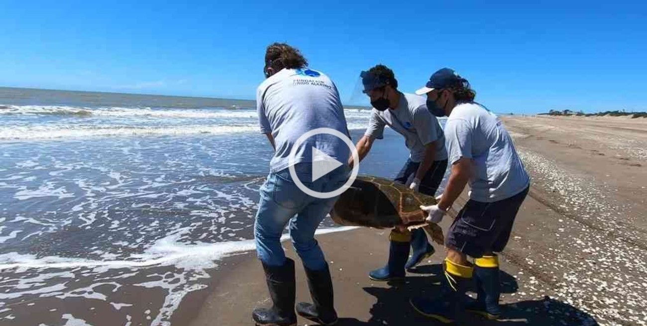 Una tortuga cabezona (Caretta caretta) regresó al mar este lunes luego de ser rescatada por pescadores artesanales que la encontraron enmallada en sus redes de pesca. Claudio Silva y Richard Marin se encontraban embarcados el pasado miércoles 28 de octubre en aguas de la Bahía Samborombón, a la altura de San Clemente, cuando detectaron que el reptil quedó atrapado en sus redes. Enseguida dieron aviso a la Fundación Mundo Marino del hallazgo del animal y lo trasladaron hasta el Centro de Rescate.