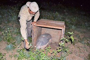 Un tatú carreta o armadillo gigante de casi un metro y medio de largo fue rescatado por los técnicos del Programa Biodiversidad, Áreas Protegidas y Cambio Climático, dependiente de la Dirección de Fauna de Formosa en un establecimiento agropecuario de la localidad formoseña de General Güemes.