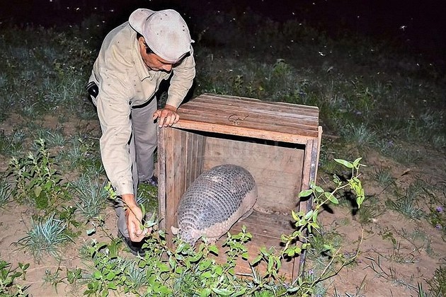El animal, un tatú carreta (Priodontes maximus) macho adulto con un peso aproximado de 50 kilogramos y con 1,47 metros de largo que va desde el hocico a la cola, se encontraba en un establecimiento agropecuario de la localidad de General Güemes, unos 250 kilómetros al noroeste de la capital provincial, informo hoy la Dirección de Fauna a través de un comunicado.