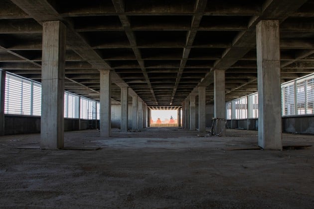 Ubicado en avenida Circunvalación y San Martín, en medio de barrio Las Flores, uno de los más carenciados, sigue intacto a la espera de que las obras se reinicien. Hoy se vislumbra una mega estructura que al ingresar está totalmente vacía, inclusive con arena en el suelo. Es decir que solamente se montó la fachada.