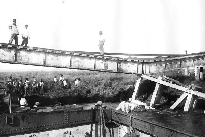 Fue inaugurado en 1907 y prestó servicios hasta marzo del ‘26. El mencionado artículo del ex presidente del Museo Ferroviario recuerda que la creciente obligó a suspender todos los servicios de trenes. A mediados de ese mes un enorme embalsado de camalotes quedó retenido entre los pilares de madera del intrincado puente.
