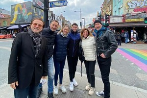 “Estamos de vacaciones con mi familia, mi esposo y mis hijos. Hoy es nuestro último día en Londres y fuimos a recorrer un mercado, el Camden Town. En una esquina pintoresca paramos para sacarnos la foto los cuatro juntos y le pedimos a una chica que pasaba por ahí caminando si podía tomarnos la foto”, contó la rosarina.
