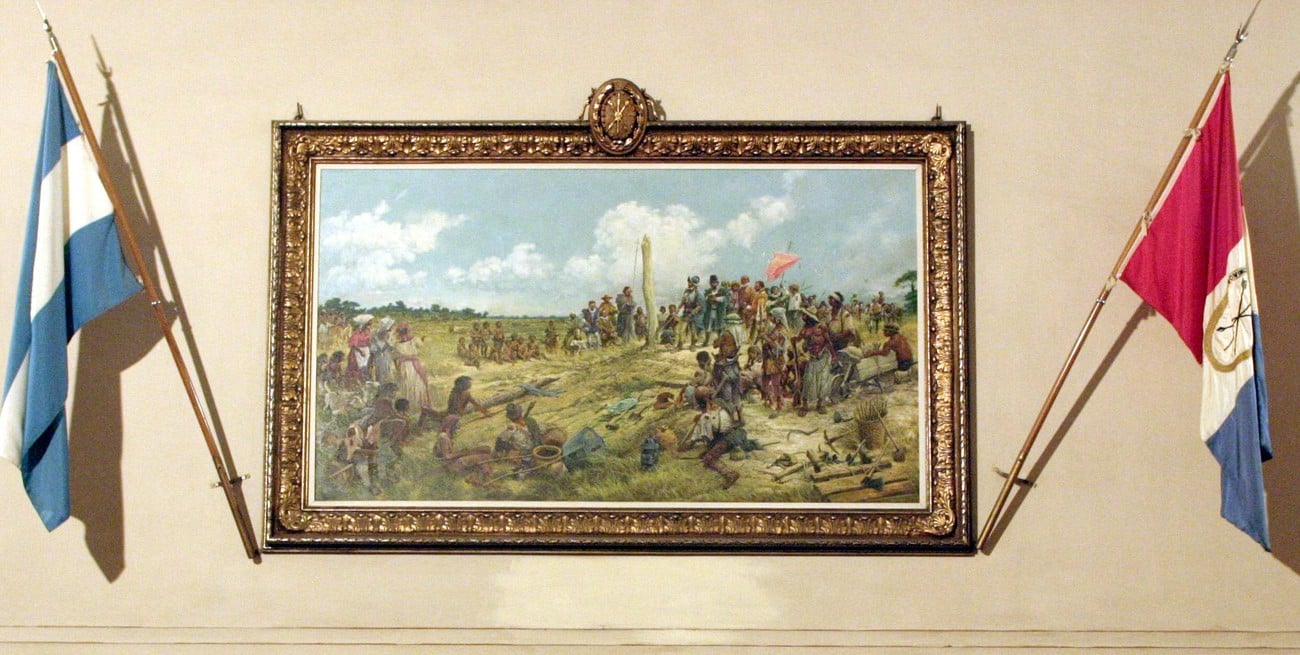 En ella, se pueden apreciar al fundador, don Juan de Garay "abriendo puertas a la tierra"; al sacerdote que acompaña la empresa; el rollo de justicia que simboliza el acto fundacional y el alférez portando el estandarte real. Esas figuras protagónicas son observadas por curiosas miradas de mancebos y nativos.