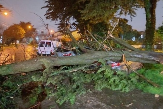 Otro árbol cayó sobre la ruta 11, a la altura del barrio Alfar, lo que impidió la circulación hacia el norte durante varias horas hasta que el personal de Defensa Civil logró despejar el camino. También se registraron autos dañados, entre ellos uno que quedó atrapado bajo un ejemplar derribado por el viento.