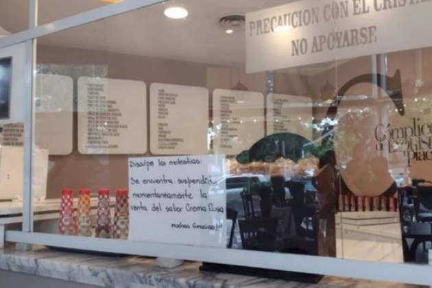 A través de un cartel colocado en la vitrina principal del local céntrico, sus propietario señaló: “Disculpe las molestias. Se encuentra suspendida momentáneamente la venta del sabor Crema Rusa. Muchas gracias”.