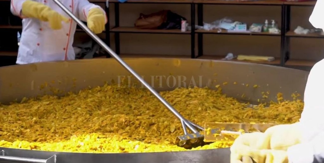 Los cocineros prepararon el plato regional en el súper Vea de la terminal de ómnibus, y celebraron cuando la balanza dio como resultado 448 kilográmos, ya que debía pesar más de 250 kilos.