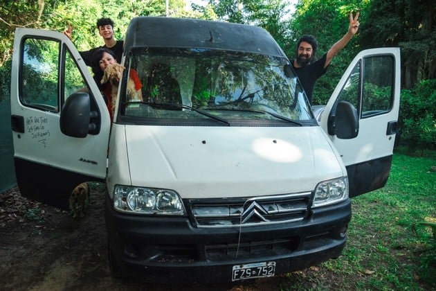 Viajan en un utilitario Citroën de 18 años, adaptado para largas distancias. “La combi era una incógnita —admite—. Más allá de que la preparamos, tiene muchos kilómetros. Hasta ahora respondió bien en zonas muy jodidas”.