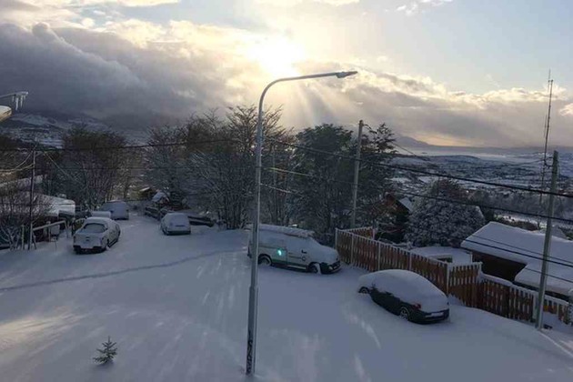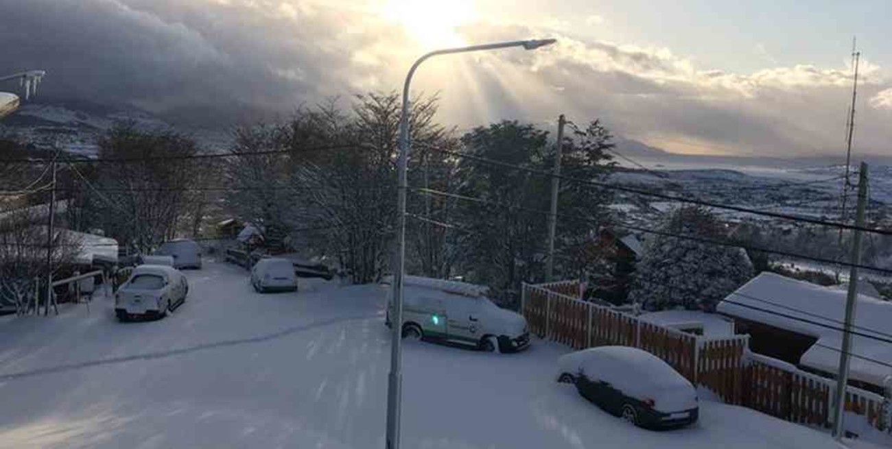 Si bien las precipitaciones se produjeron durante toda la jornada de ayer, la intensidad alcanzó su pico durante la noche y esta mañana, y la capital de Tierra del Fuego amaneció completamente cubierta de blanco.