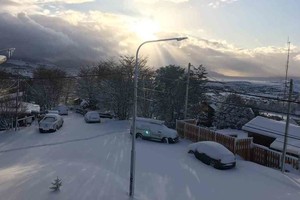 La nieve se acumuló sobre los techos de las casas, los vehículos y los árboles, generando una típica postal de invierno pero esta vez en plena primavera.