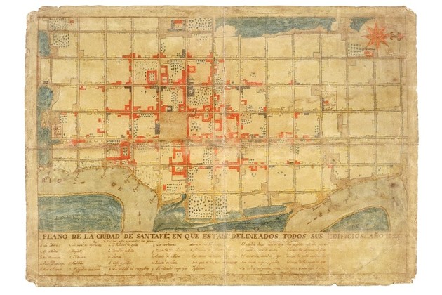 En ese entonces la ciudad apenas se había extendido más allá del trazado colonial y las novedades urbanas eran pocas: el antiguo convento mercedario aparece en ruinas, se registra el Hospital en el sector sur de la traza (donde hoy está el Centro Cívico) y se dibuja el tramo de calle que ha seccionado la antigua propiedad de dos manzanas de la Compañía de Jesús. Por otra parte, se distinguen un "puerto viejo", más próximo al área central, y un "puerto de barcas" en el recodo que el río hacía en el ángulo noreste.