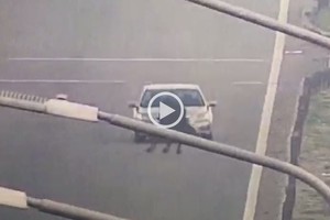 Según se observa en las cámaras de seguridad, el caballo corría por la autopista y fue directo hacia el auto, que lo chocó de frente.