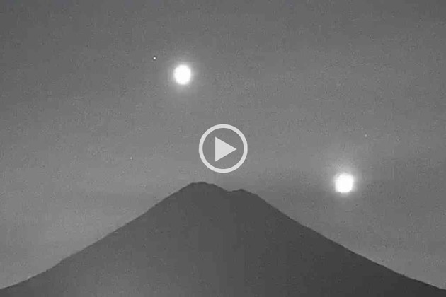 El video muestra cómo los cuerpos celestes “descienden” hacia al monte y “desaparecen” en su сráter antes de que Popocatépetl arroje una columna de humo.