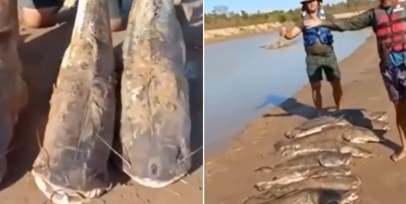 El momento se registró la semana pasada a orillas del río Bermejo, en la frontera del territorio chaqueño con Formosa. Allí, cinco hombres realizaron la pesca de dichos especímenes.