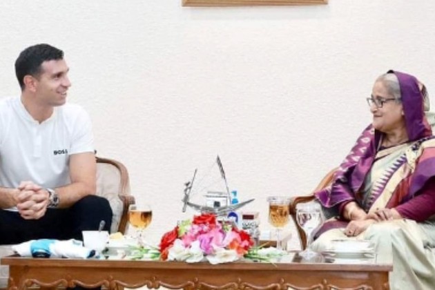 "Dibu" se reunió con la primera ministra de Bangladesh, Sheikh Hasina, y le regaló una camiseta del seleccionado, mientras que entre los fanáticos también se encontraba el ídolo local de cricket, Mashrafe Mortaza, quien se expresó al respecto mediante sus redes sociales.