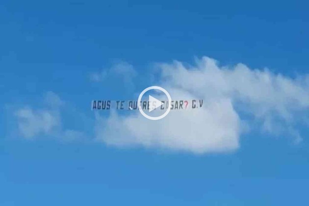 En la secuencia, que dura unos veinte segundos, se ve una avioneta que pasa sobre el mar. La misma hace flamear una una bandera que, con letras imprentas color negro, pregunta: “Agus ¿te querés casar?”. Lo firma G.V. Al ver pasar la avioneta, varios curiosos aplaudieron y alentaron a la futura novia. “Vamos Agus”, decían.