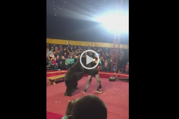 En un circo de la república rusa de Carlia, un oso atacó a su domador en la mitad del espectáculo e intentó morderlo en varias ocasiones.