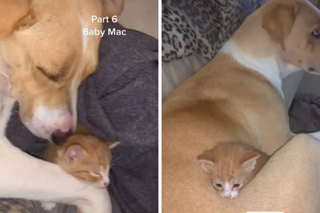 Una perra había dado a luz pero, tras el parto, ninguno de sus cachorritos sobrevivió. Sin embargo, adoptó a un gatito de la calle que estaba abandonado y hoy lo cuida como si fuera su verdadero hijo.