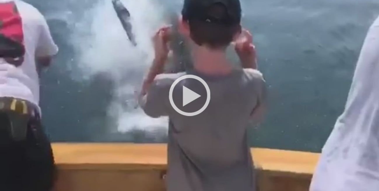 Según se observa en el video, el feroz cazador atrapa el pez que la familia había capturado, generando una gran sorpresa para los presentes.