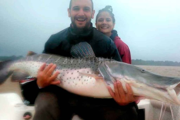 Gonzalo Alcaraz y Virginia Gianre vivieron este sábado una experiencia inolvidable para cualquier pescador. Es que mientras se encontraban en Corrientes de paseo, lograron pescar un gran ejemplar de surubí de 40 kilos.