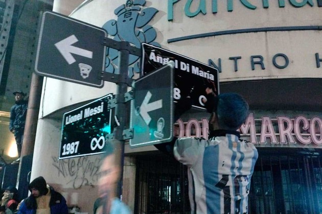En la ciudad de Santa Fe, un particular festejo trascendió fronteras. Un grupo de jóvenes intervino los carteles de las calles y cambió la nomenclatura oficial por la de los ídolos del fútbol. Así, la tradicional esquina de bulevar Pellegrini y Rivadavia pasó a llamarse Messi y Di María.