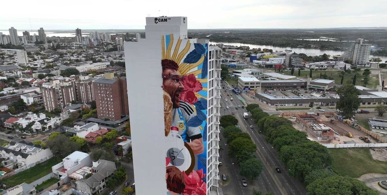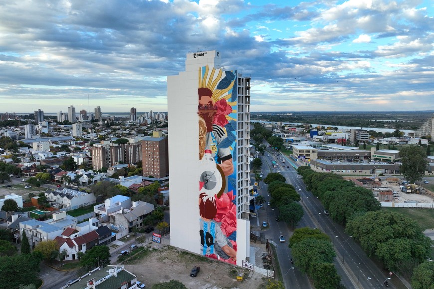 Cuando El Litoral lo presentó impactó a todos. El mural dedicado a Lionel Messi más grande del mundo se realiza en Santa Fe. Ubicada en el macrocentro de la capital provincial, la gran obra artística avanza a pasos firmes.