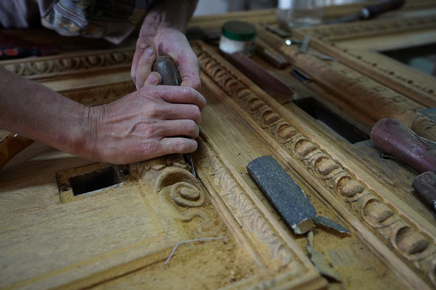—Nos llevó cerca de dos meses, con un equipo de tres carpinteros y un orfebre. Aprovechamos el parante roto para recuperar molduras y tallas faltantes, como los óvalos y dardos laterales. El parante principal se reemplazó por un nuevo roble, similar en características físicas y mecánicas al original, aunque de tonalidad más clara.
