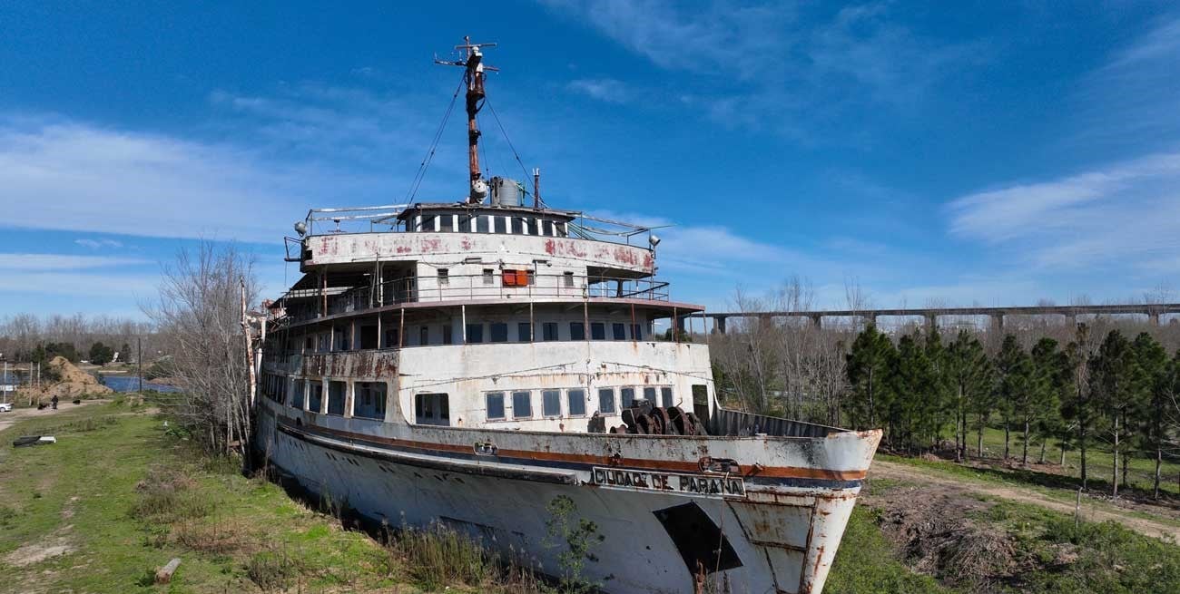 Un equipo de El Litoral viajó hasta el lugar, situado en lo que se conoce como Isla Talavera (partido de Campana, provincia de Buenos Aires) y charló con Bernardo Ditges, dueño del complejo. Un recorrido por cielo y tierra para desempolvar la historia de este mini Titanic, que brilló hace décadas y ahora aguarda su próximo destino.