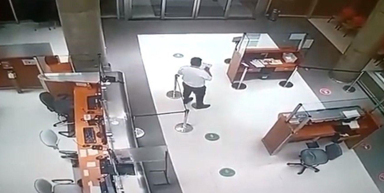El empleado decidió corroborar las cámaras del efector y comprobó que aunque se ve claramente cómo las puertas corredizas se abren, cuando él comienza a charlar, allí no había nadie más.