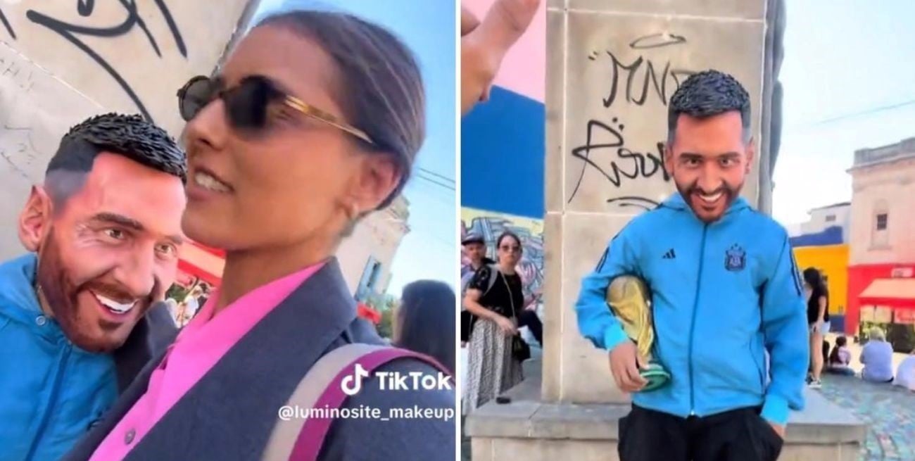 Todo ocurrió en Caminito, en el barrio de La Boca, donde una joven se acercó a lo que parecía ser una figura hiperrealista de Lionel Messi. En las imágenes se ve cómo la chica se acerca lentamente para grabarse junto a la supuesta figura del capitán argentino, que estaba sentada e inmóvil. La idea parecía simple: posar, arrimarse y darle un beso a la “estatua” para subir el clip a TikTok.