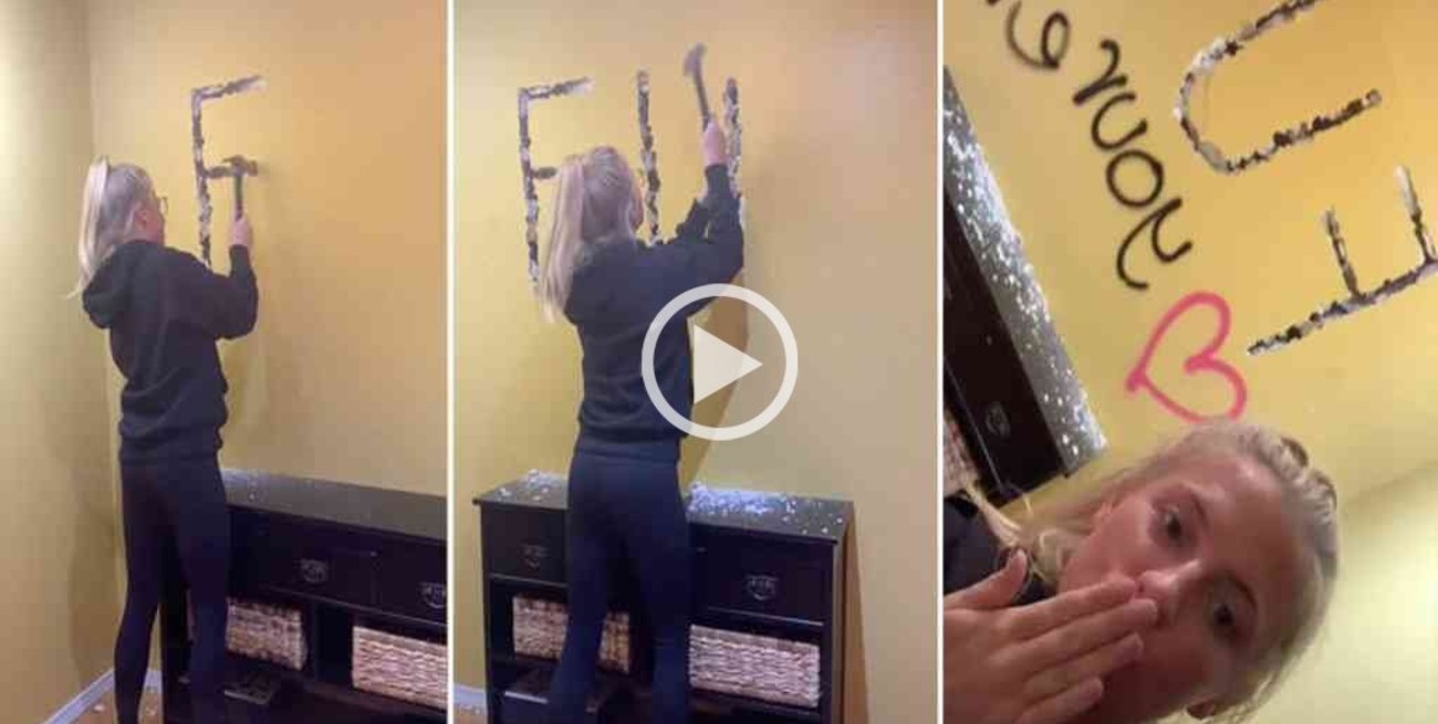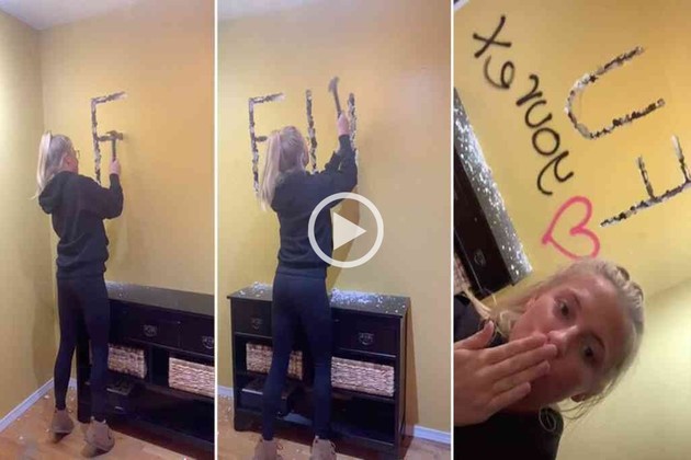 En el video, que se convirtió en viral, se ve cómo Ashley VanPevenage se arma con la herramienta y martilla en la pared las letras 'FU', las conocidas iniciales de una expresión obscena ('que te jodan', en español). No conforme con su venganza, con pintura en aerosol firmó el mensaje escribiendo "de parte de tu ex".