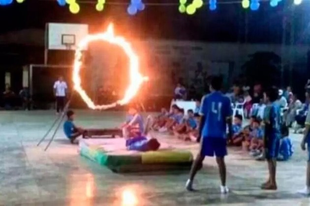 El hecho ocurrió en una escuela de la localidad de Monte Quemado en la que se desarrollaba una exhibición de educación física en la que los alumnos debían atravesar un aro con fuego.