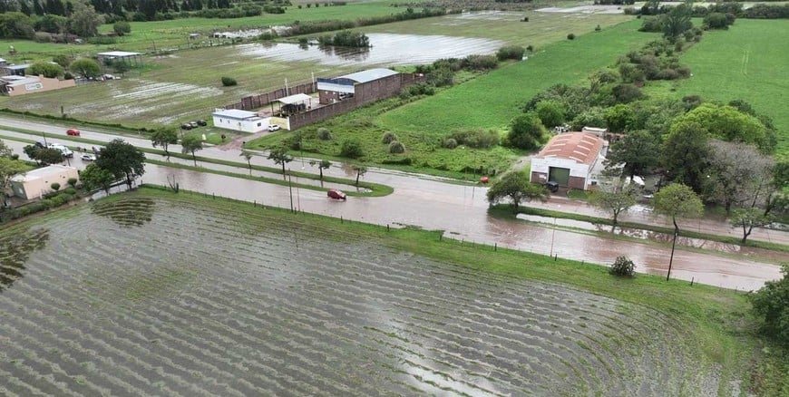 El drone de El Litoral captó imágenes impactantes de la calzada cubierta de agua, lo mismo que el zanjón a cielo abierto que corre en paralelo a la arteria.